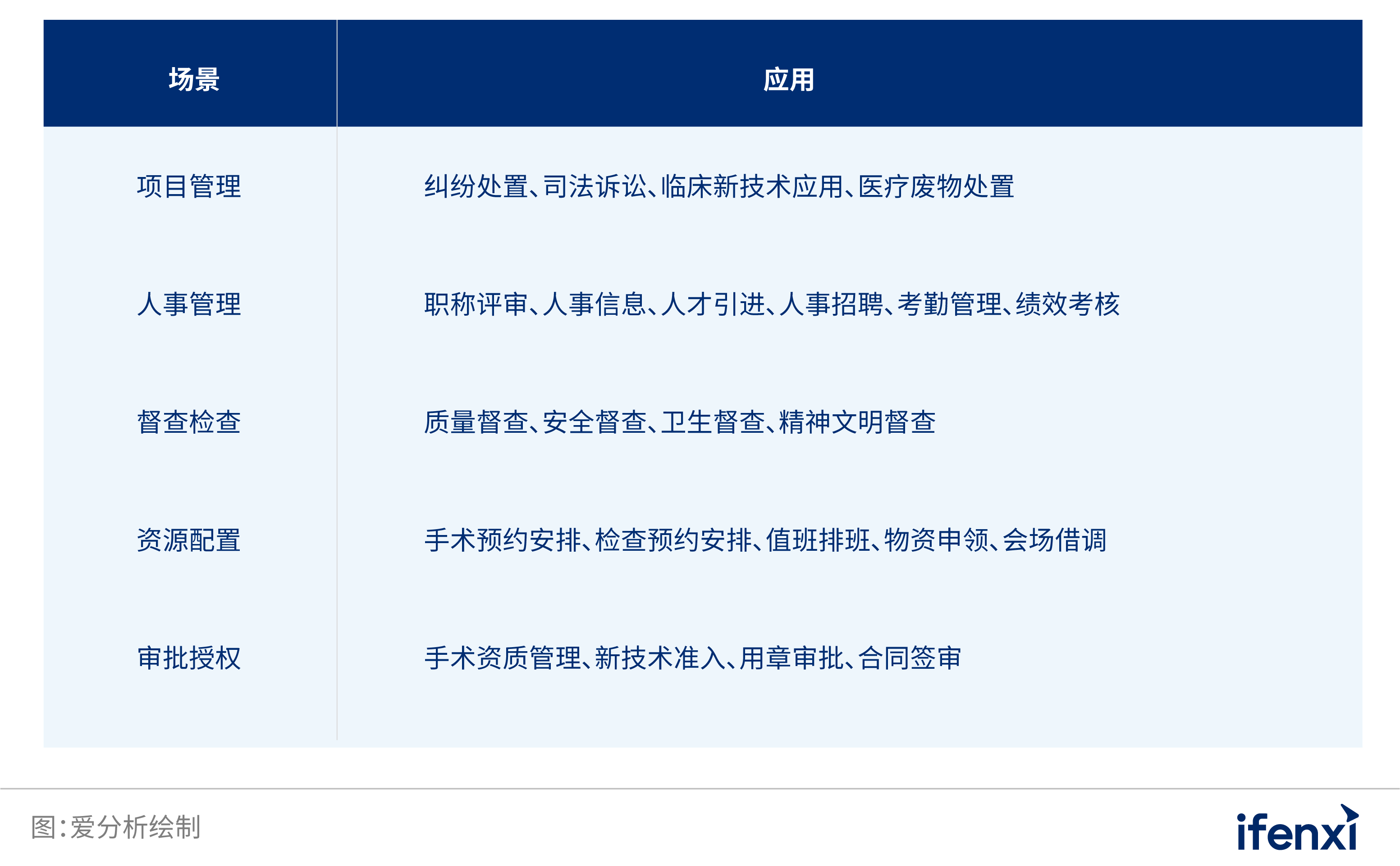 | 案例6:为实现智慧医疗,中山医院利用无代码搭建“智慧化管理体系” 复旦大学附属中山医院,简称“中山医院”,是中国人创建和管理的最早的大型综合医院之一。在国家推动智慧医疗建设的政策引导下,中山医院决心优化医院内部的数字化管理体系,以解决当前面临的信息管理痛点,实现智慧医疗、智慧服务、智慧管理三位一体。 五大管理挑战出现,医院亟需降低管理成本,提高管理效率 作为全国领先的大型综合医院,中山医院有着庞大的业务和人事管理体系,员工每天都要处理着大量医疗案件和内部管理业务,应对繁重的人、事、物管理流程。具体而言,在以下五个场景的管理上存在需求: 第一,项目管理类需求。医院要对纠纷处置、司法诉讼、医疗废物处置等多个项目进行管理,但每个项目包含多个流程,如医患纠纷事件处理涵盖28个流程,且各流程都要进行严格准确的信息管理和层级审批,管理任务重,需要耗费大量的成本。 第二,人事管理类需求。中山医院有上千员工,需要对人才引进、人事招聘、考勤、绩效考核、职称评审等环节产生的资料与员工信息进行管理,但人工管理的方式耗时长且容易出错,管理效率急需提高。 第三,督查检查类需求。医院需要对质量、安全、卫生、精神文明等进行督查,但督查工作要求现场收集与提交详细的文字与多媒体材料,人工操作的效率低。 第四,资源配置类需求。由于手术室、医生、维修人员、物资以及时间等均是有限的,医院需要对场地、物资、工作人员等资源进行合理配置,但人工调配的方式容易出错,且需要大量的时间与人力成本,难以满足其科学化管理资源的需求。 第五,审批授权类需求。医生的职称评审、新技术准入、采购等流程均需要提交大量的材料并逐级申报,但通过人为递交纸质材料的方式速度慢,容易造成材料丢失、审批延迟等问题。 为解决以上问题,中山医院需要提高管理效率,降低管理成本。基于此,中山医院完成了标准化流程的建立、标准的书面化梳理、系统需求设计的整理以及需求的技术可实现度的评估等工作,最终决定搭建一套可灵活配置、功能多元、支持数据贯通的信息系统工具。 基于清晰的需求与多科室试用,中山医院选择明道云无代码平台 为了满足以上需求,传统的解决方案一般是通过采购系统或根据现有需求定制化开发系统。然而,职能部门的管理流程经常会因为政策的变更或者质量持续改进的原因进行调整,医院就需要对已有系统再次进行定制化开发,此过程中,开发人员的工作量繁重,开发周期长,且成本高,难以实现应用随着管理流程的变更即时升级换代,造成业务需求与应用功能之间产生了缺口。因此,中山医院需要寻求一个开发平台,支持没有IT技术基础的行政及业务人员就可以快速进行应用自主开发与迭代。 在合作伙伴国外Tower团队的推荐下,中山医院开始对接明道云。中山医院发现,无代码应用搭建平台的工作表、视图、统计图、角色设置、工作流等功能可以满足医院在纠纷档案管理、工作联系单管理、数据统计、全员全流程管理与自动分派任务等场景上的需求。最终,通过各科室成员的陆续试用,中山医院决定采购明道云无代码搭建平台来构建医院的数字化系统。 明道云成立于2013年,致力于为企业提供一个可以快速搭建个性化业务应用、实现业务和流程的自动化的APaaS平台,助力企业提高整体数字化和智能化水平。通过将其旗下无代码应用搭建平台的能力与合作伙伴的服务能力相结合,明道云为企业提供专业的应用开发解决方案。 图 23: 明道云无代码平台技术架构 明道云无代码应用搭建平台能够帮助企业快速搭建个性化业务应用。业务人员与IT人员能够应用平台的APaaS能力,通过工作表、视图、报表、权限、工作流、自定义页面等模块,无需代码开发就搭建出销售、运营、人事、采购等核心业务应用;通过扩展组件,实现企业微信、钉钉、WeLink、飞书与第三方应用的集成;通过API与MySQL等数据库打通,联通企业内部数据;同时,平台的自动化工作流还可以实现审批、填写等控制流程和业务自动化。此外,明道云无代码应用搭建平台还可以实现在物理机、虚拟机、云主机等基础设施上的部署。 借助明道云无代码平台,中山医院实现多场景智慧化管理 在开始使用无代码平台前,中山医院组织部分工作人员参加明道云的一对一培训与无代码训练营,并让完成训练营课程的工作人员在院内进行培训与孵化,以保证无代码平台在院内的充分落地。 应用搭建完成后,中山医院的工作人员经过多次验证修改后再正式投入上线使用,如安全科自行搭建了医疗纠纷管理系统后,经过反复测试,在明道云售后服务团队的支持下,多次迭代完善,最终上线应用;应用的推广是由点及面的,在医疗纠纷管理系统上线后,医院才开始扩大范围,根据医疗处、人事处、护理部等部门的需求进行应用搭建。 目前,中山医院使用明道云无代码开发平台已搭建了20多个应用,覆盖了项目管理、人事管理、督查检查、资源配置、审批授权五大管理场景。在中山医院的应用集群中,“手术安排系统”与“医患纠纷管理应用”最具代表性。 表 2: 中山医院应用集群表 搭建手术安排系统,灵活配置手术资源。针对手术资源配置组合复杂、容错率低的问题,中山医院手术室的医生用明道云无代码平台构建