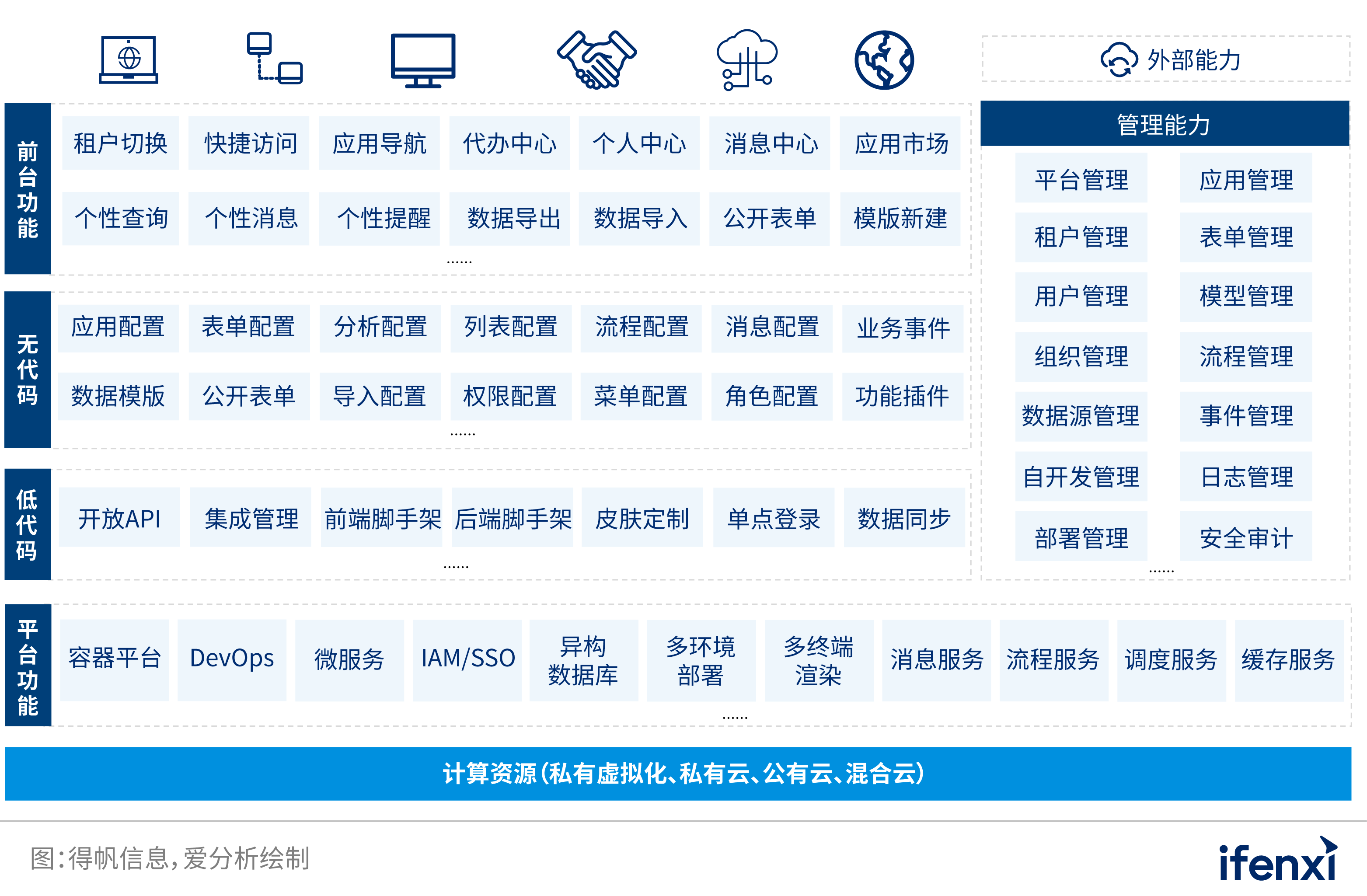 未来,企业的业务需求将会更加专业、丰富与多变,需要能够借助低代码快速响应,进行应用开发;基于此,低代码厂商将在特定行业与场景上深挖,加强其专业性,打造竞争优势。因此,在未来企业将会进行多低代码平台进行采购与使用,在此趋势下,爱分析认为,低代码市场可能会呈现平台化的趋势。