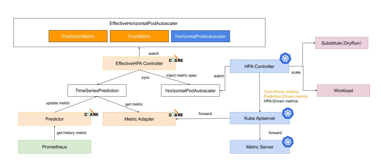 Crane 的智能水平弹性能力是基于 Effective HPA 实现。用户在安装 Crane 后即可直接使用 Effective HPA 开启智能弹性之旅。