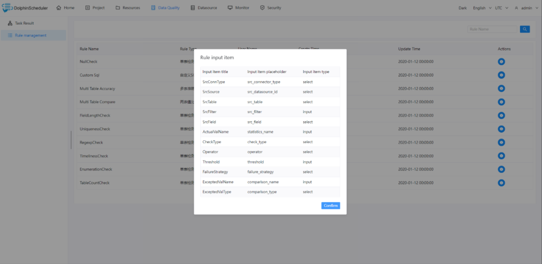 现在,3.0.0-alpha 已经实现了数据质量原生支持,支持在工作流运行前进行数据质量校验过程,通过在数据质量功能模块中,由用户自定义数据质量的校验规则,实现了任务运行过程中对数据质量的严格控制和运行结果的监控。