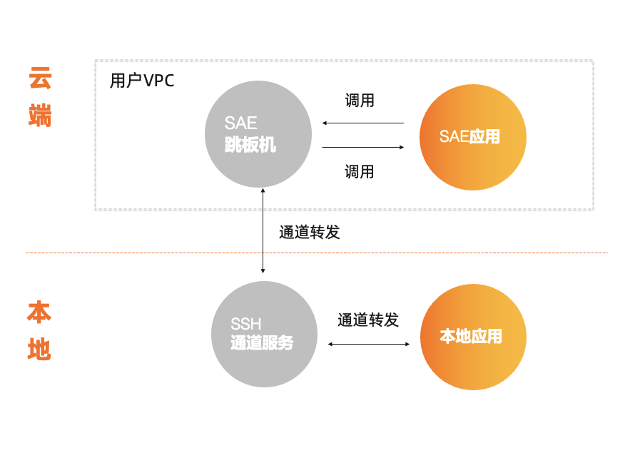 在开发联调测试的过程中,受限于对应用本身环境的依赖,考虑到启动部署速度和效率,开发者往往不愿意重新在本地启动云上应用,模拟云端执行环境进行本地调试。这其实也是 Serverless 场景下面临的一大难题,SAE 借助内置跳板机,实现本地服务与云端 SAE 应用间的互调,同时支持 Java/php remote debug 和实例的远程访问,真正的将本地和云端环境融为一体。