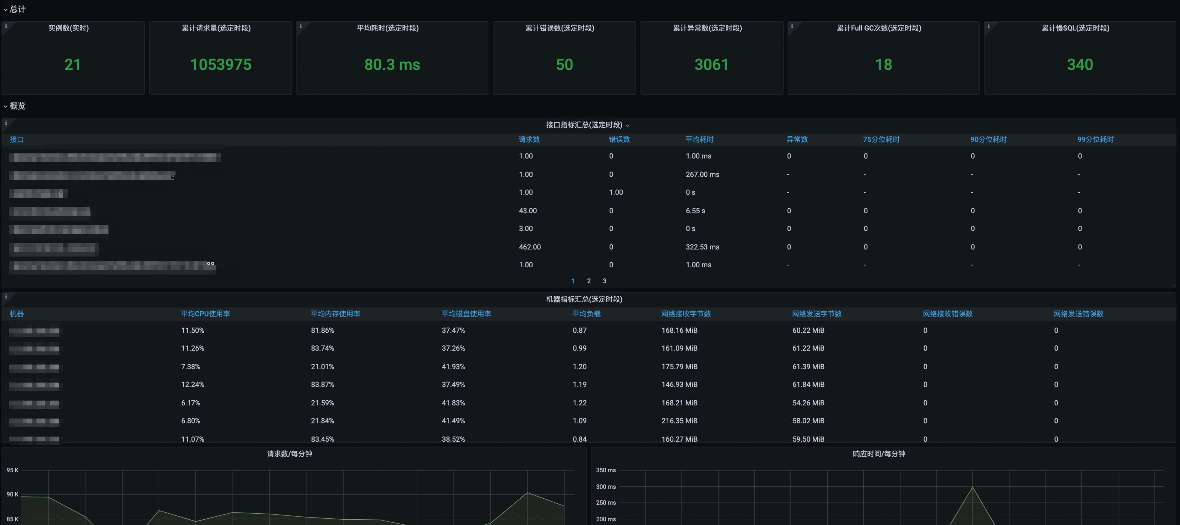 针对于 Java、Php 语言的应用,SAE 可以通过 agent 技术对其接口 RED 等数据进行埋点采集。同时,其数据也已预制在 Prometheus 中,并集成可视化大盘,用户可以通过 Grafana 进行自定义大盘的配置。