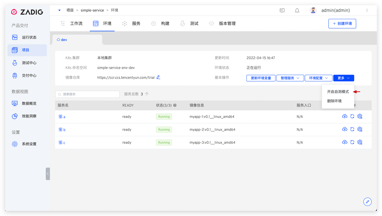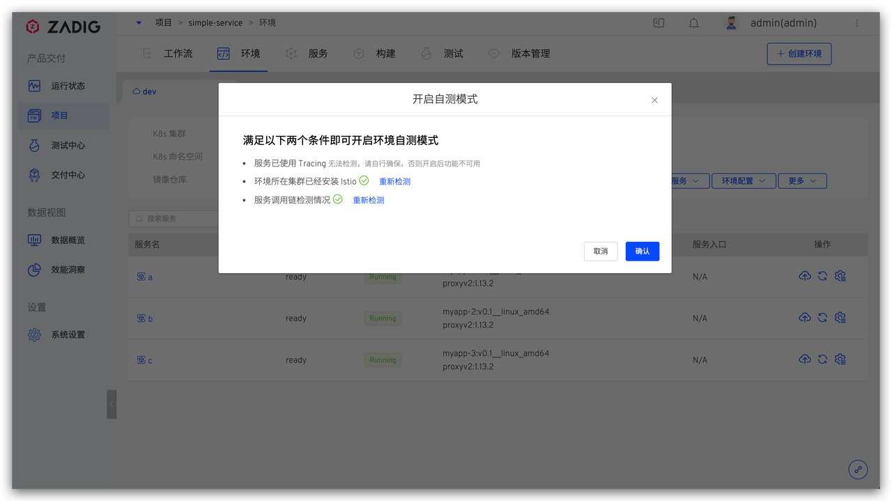Zadig 环境的自测模式能力尤其适用以下场景::