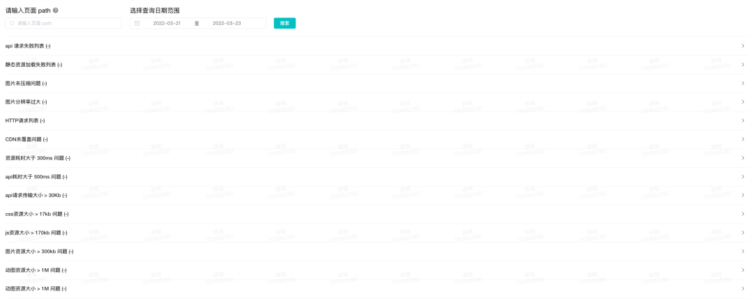 主要通过 CDN 未覆盖监控、http请求监控、网络监控(加载失败、耗时异常、传输大小异常)、图片监控(未压缩、分辨率异常)等监控手段发现页面中的潜在问题,同时还提供了问题分析能力,在问题分析页面输入页面url地址即可帮助您发现问题并给出修改建议。