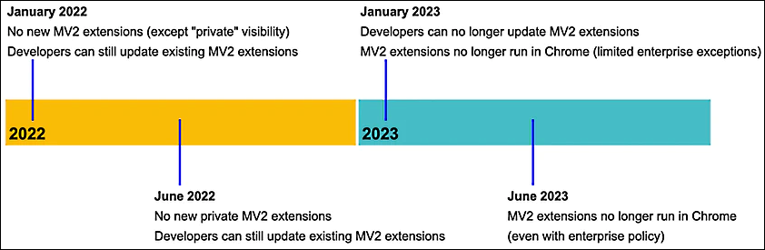 Google 作为 Manifest V3 的制定者,他们针对 Chrome 设定的 Manifest 时间表如下: