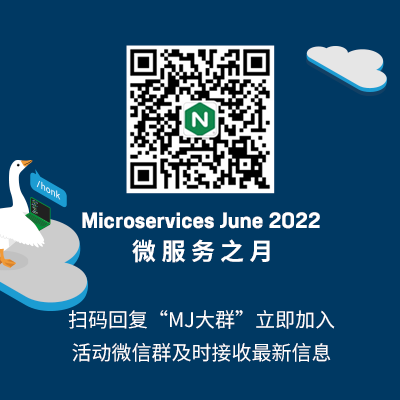 我们非常希望了解您对什么内容感兴趣,也想要了解我们如何能让您的 Microservices June 微服务学习之旅变得更有价值。如果您有任何问题或建议,欢迎加入活动大群与我们直接交流。微信添加小 N 助手,回复 “MJ 大群” 立即进群。