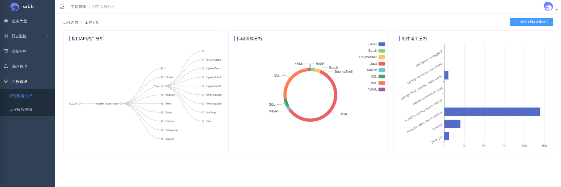 - 开放工程管理的入口,可以进行服务绑定,快速绘制服务地图能力。