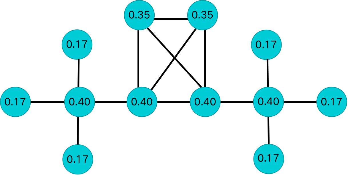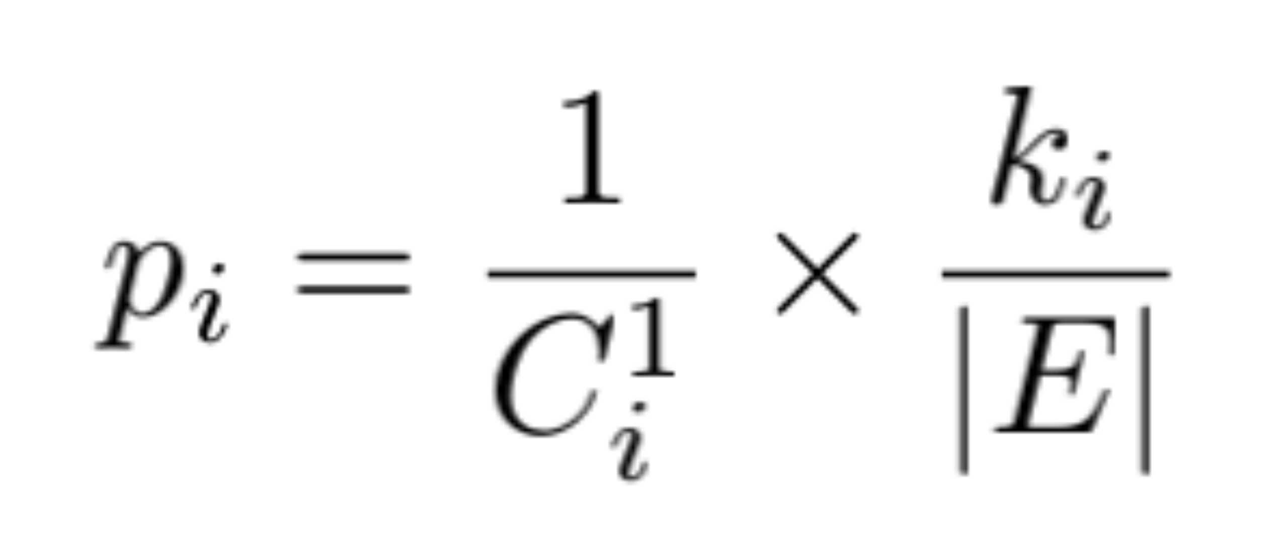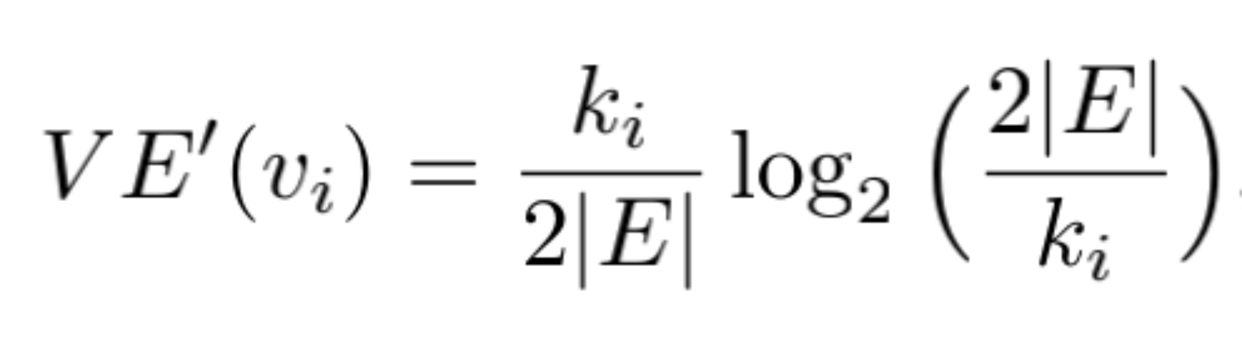 对于图G(V,E),V表示顶点,E表示边; 节点度:与节点相连的边的数目,ki表示顶点vi的度; E :图中存在的连接边总数。节点熵衡量的是——local ‘information’ that a given vertex carries about the global structure of the graph——关于整个网络节点携带的局部结构信息含量,节点熵越高,表明节点信息含量越大,说明节点重要性越高。当节点熵计算所基于的概率(p,衡量节点在网络结构中携带信息的概率)定义不同时,计算熵的方法也不同。