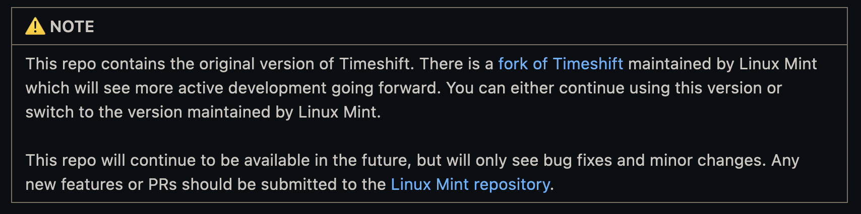 由于 Linux Mint 已经成为 Timeshift 的新开发者,项目也由个人开发变成了团队开发,我们可以期待该工具在不久的将来能够带来更多的新功能和改进。目前项目的源代码已从开发者 Tony George 自己的仓库转移到了 Linux Mint 的仓库,未来所有的新功能或 PR 都应提交到 Linux Mint 维护的仓库。