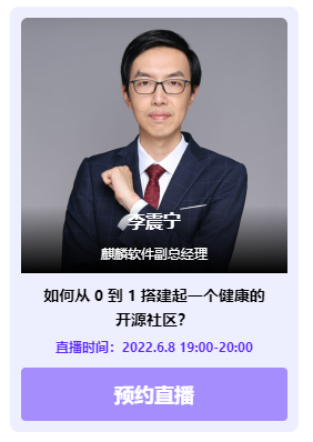 优麒麟社区作为致力于推动开源发展的全球开源项目之一,本次也有幸受邀参加 Gitee 九周年庆典系列直播。我们将由麒麟软件副总经理李震宁,在 2022 年 6 月 8 日 19:00-20:00,为大家分享如何从 0 到 1 搭建起一个健康的开源社区,干货满满千万不要错过哦~