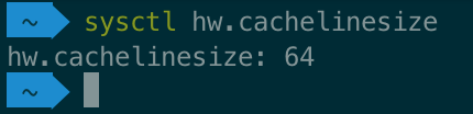 Mac 系统可以通过sysctl hw.cachelinesize查看缓存行的大小。