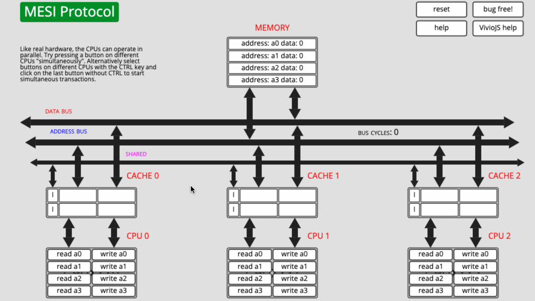 - cpu1 处理队列中 invalidate 的消息,并从自己的 cache 中使包含 a 的 cache 行失效。但是已经太迟了。