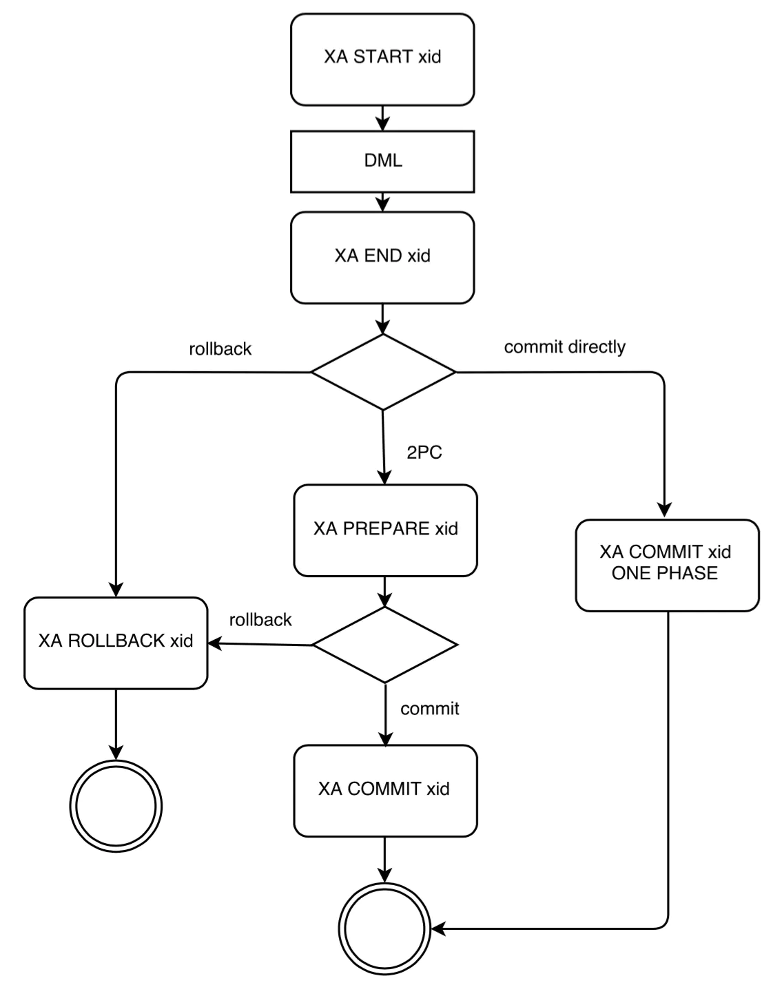 最后一步,可以通过 XA COMMIT 来提交,也可以通过 XA ROLLBACK 来回滚,回滚后事务的状态就是 ROLLBACK。