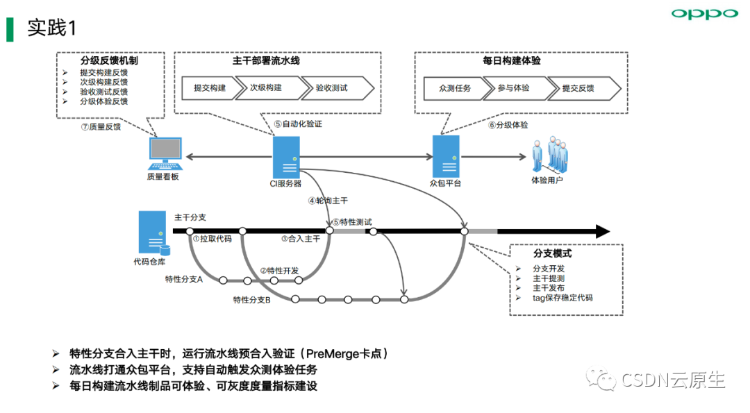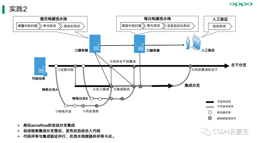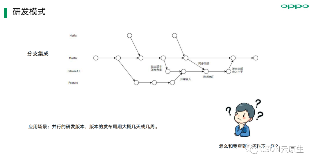 实际并非如此,OPPO研发云针对不同研发模式做了对应的产品能力建设,使其在相应的研发模式下能完成DevOps持续交付闭环。