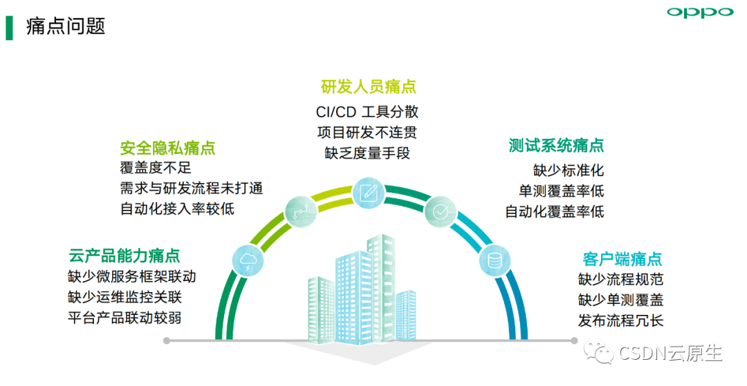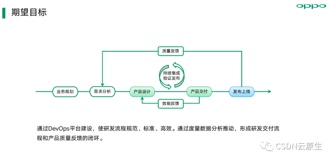 基于上述分析的研发流程中的一些痛点问题,以及基于痛点希望达成的目标,OPPO DevOps平台——研发云平台诞生。