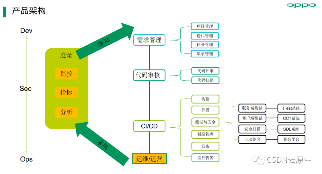 OPPO研发云整个的产品架构,是基于之前功能模块做架构的规划,如下图所示: