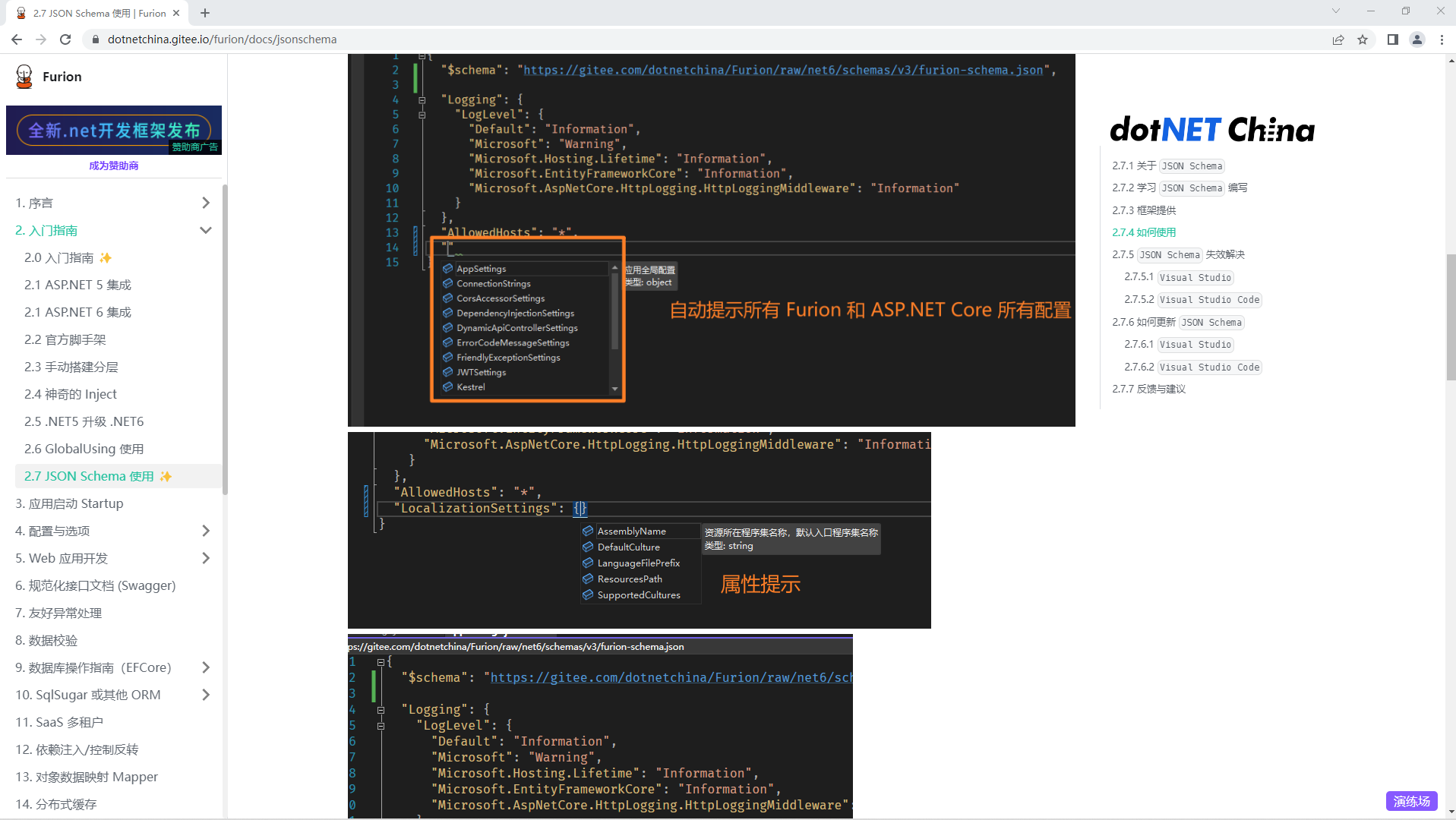 Furion和ASP.NET Core完整json配置的JSON Schema架构 JSON Schema- [新增]