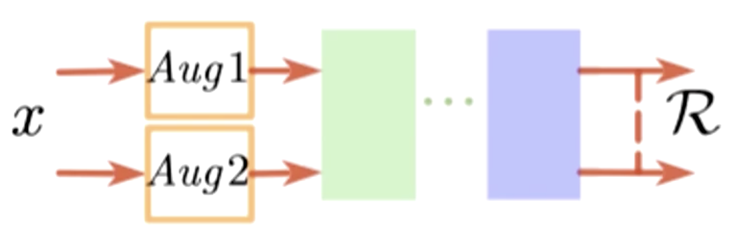 这里的ζ指的是随机数据增强。ζ1和ζ2是两种不同的随机数据增强。