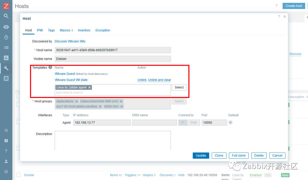 现在可以进一步修改使用Zabbix VMware监控功能创建的主机: