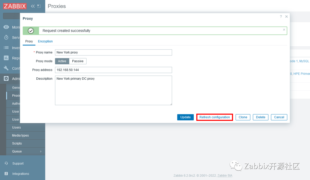 Zabbix proxy管理从未如此简单!现在,proxy配置可以立即从Zabbix前端重新加载: