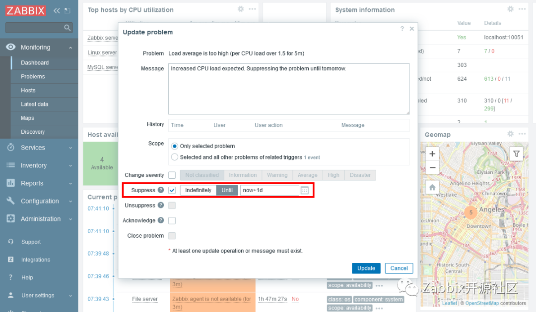Zabbix管理员现在可以通过抑制不相关的问题来隐藏它们: