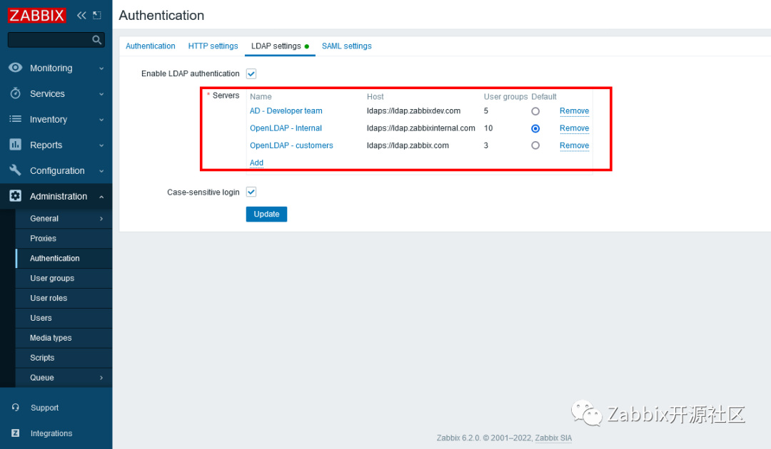 支持多个LDAP servers进行用户身份验证