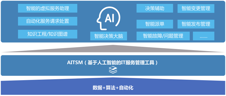 AITSM是Gartner提出的面向IT服务管理领域的新概念,是指在 ITSM 工具和实践中综合应用人工智能、 自动化 和大数据技术,以提高运维人员的整体效率和减少错误。
