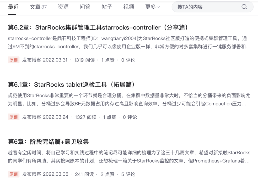 过去半年里,你在自己的博客上撰写了超级详细实用的 StarRocks 使用攻略,是什么契机和状态促使你持续分享这么多的内容?
