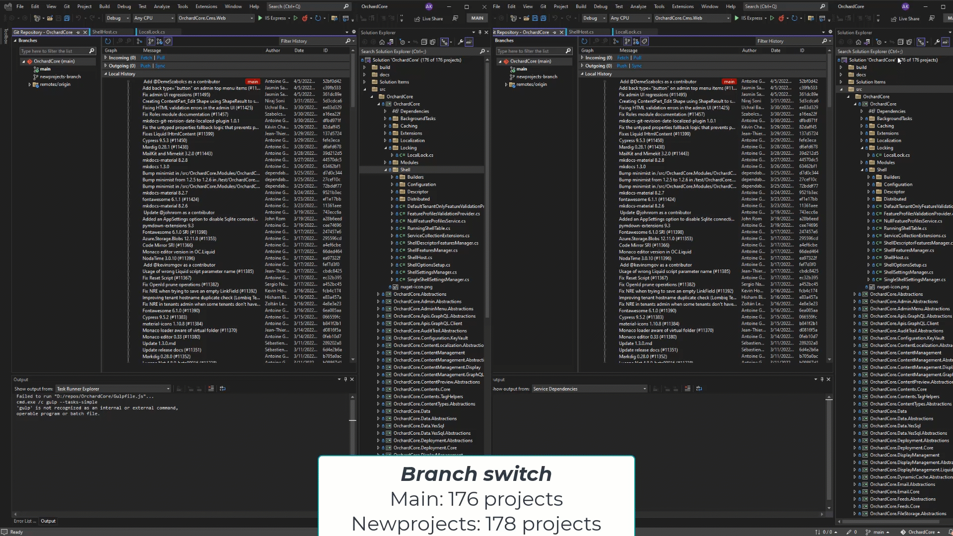 在 Git 存储库中的分支之间切换后,此前的版本经常要等待解决方案和项目重新加载。但现在,90% 的分支切换无需重新加载解决方案。