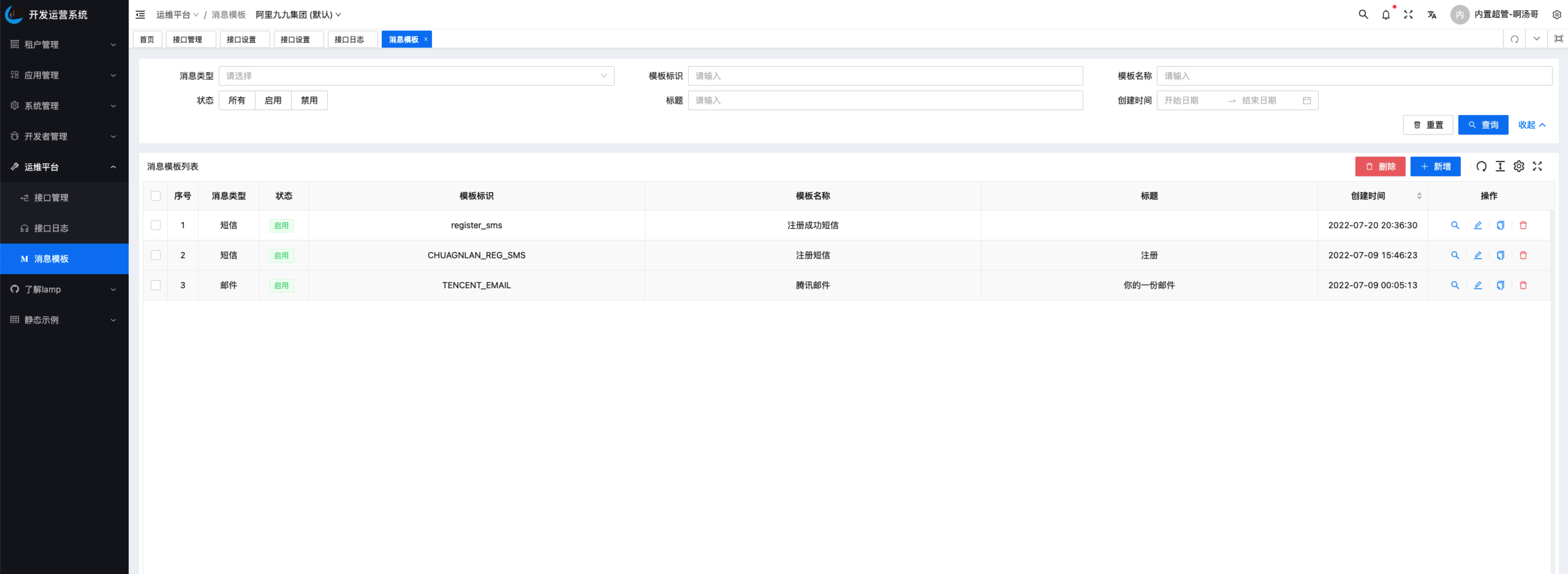 - - 消息中心重构,支持发送阿里云短信、百度云短信、腾讯云短信、创蓝短信
