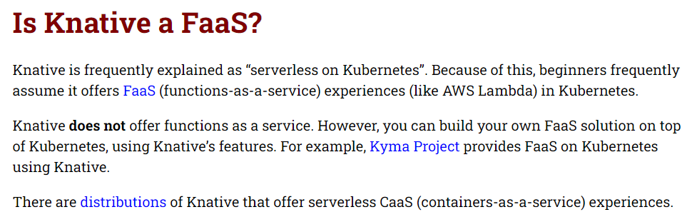 事实上,Knative也并不是FaaS产品,关于这点官方也是给出过说明的。当然了,我们是可以基于Knative去做FaaS产品,国产FaaS产品openFunction便是一个例子