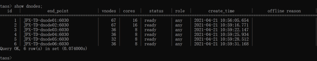 最后,数据通过 TAOSC 模块把数据写入我们部署的 TDengine 企业版 6 节点集群中。