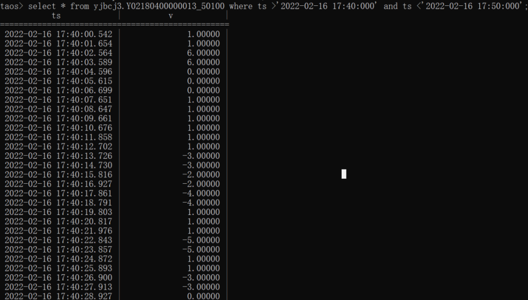 1. 对超级表 voltage_prop 表执行时间段查询。