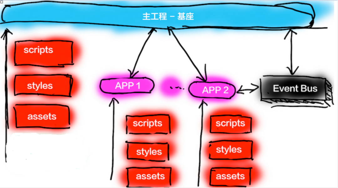 使用qiankun进行微前端改造后,页面被拆分为一个基座应用和多个子应用,每个子应用都运行在独立的沙箱环境中。