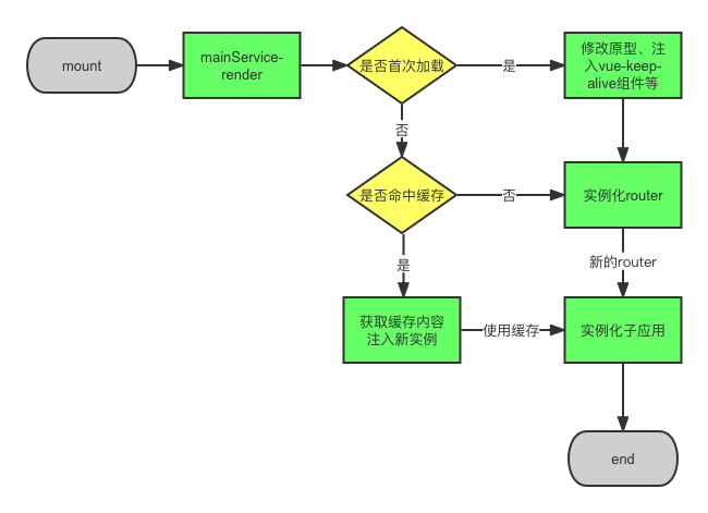 // 创建子应用实例,有缓存的vnode则使用缓存的vnodefunction newVueInstance(cachedNode) {const config = {router: this.router,store: this.store,render: cachedNode ? () => cachedNode : instance.render, // 优先使用缓存vnode});return new Vue(config);}// 实例化子应用实例,根据是否有缓存vnode确定是否传入cachedNodethis.instance = newVueInstance(cachedNode);this.instance.$mount('#app');