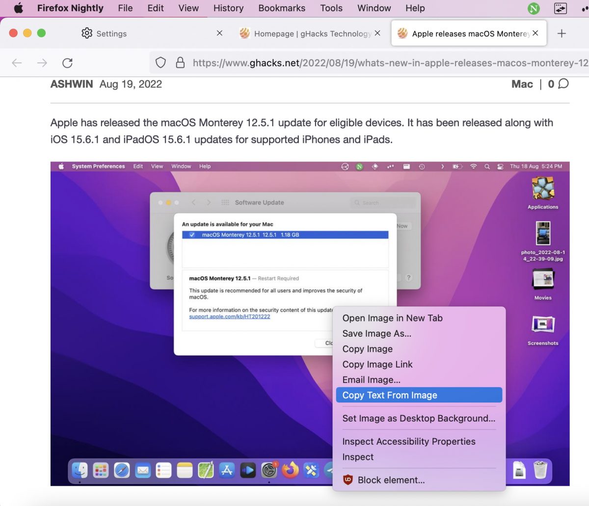 Firefox 新增图像文本识别功能,目前仅限 MacOS