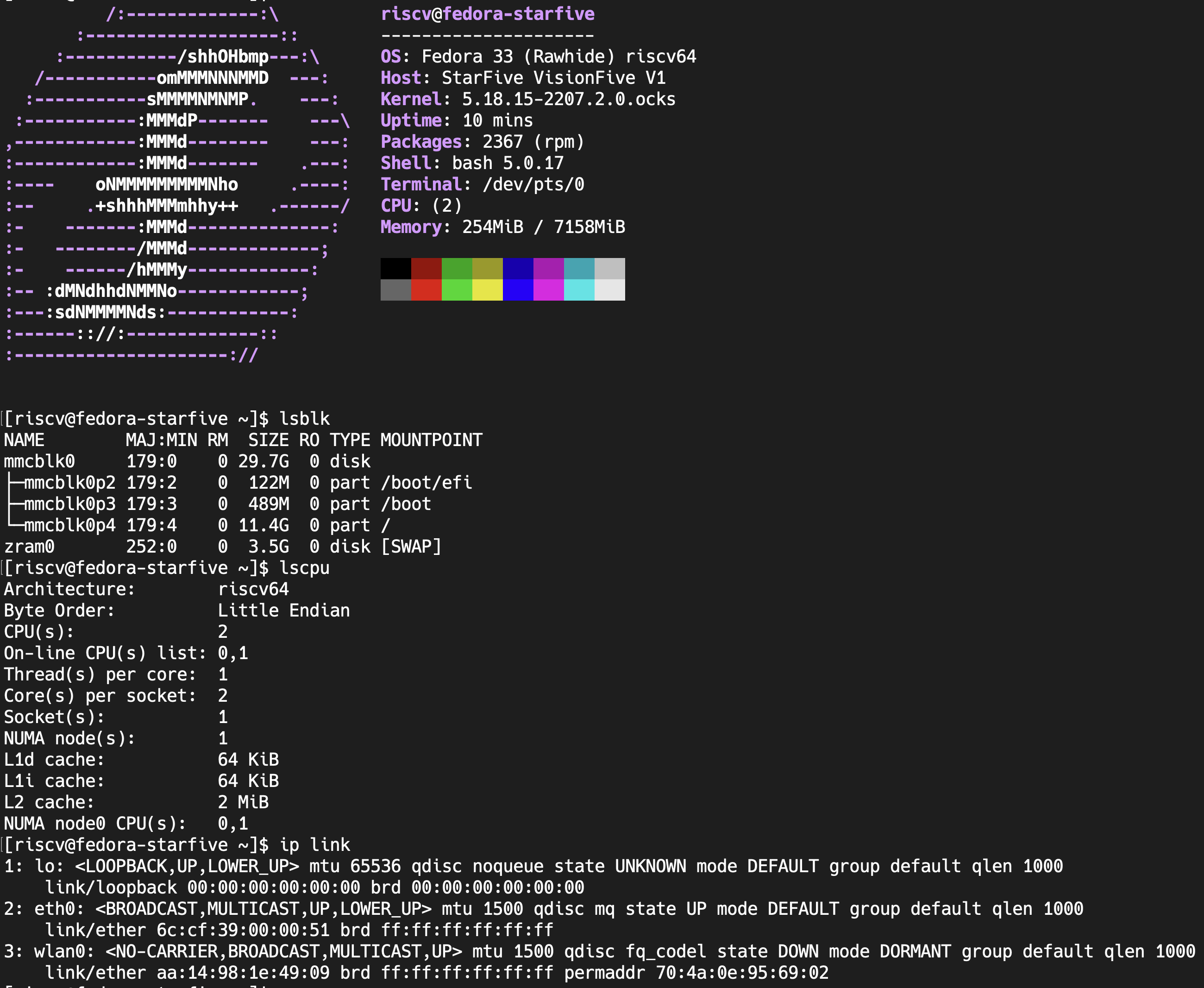 VisionFive 官方提供了 基于 Fedora 的系统镜像。OCKS 便是在此基础上进行了测试与适配。