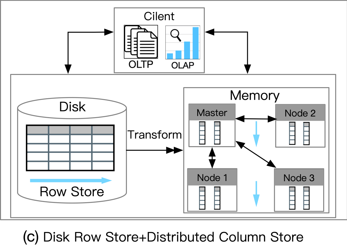 磁盘行存储+分布式列存储 (Disk Row Store + Distributed Column Store)