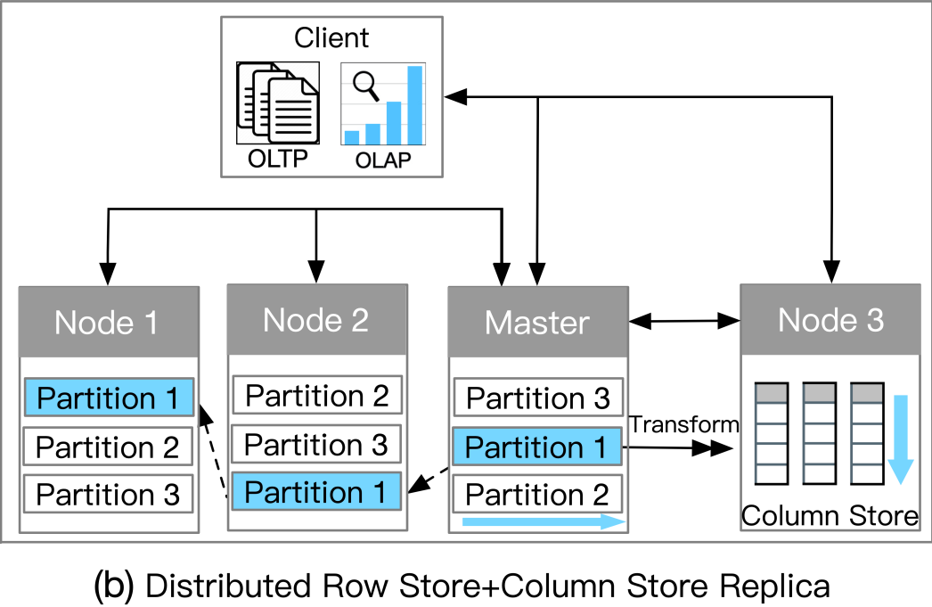 分布式行存储+列存储副本 (Distributed Row Store + Column Store Replica)