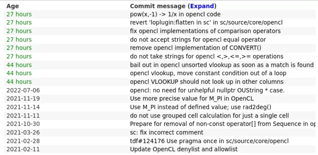 Collabora 的工程师 Luboš Luňák 一直在对 OpenCL 路径进行一些代码清理。其中包括:重写了一些代码、删除 OpenCL CONVERT() 实现、放弃 OpenCL 中字符串代码的“stupid”想法,以及一些优化。