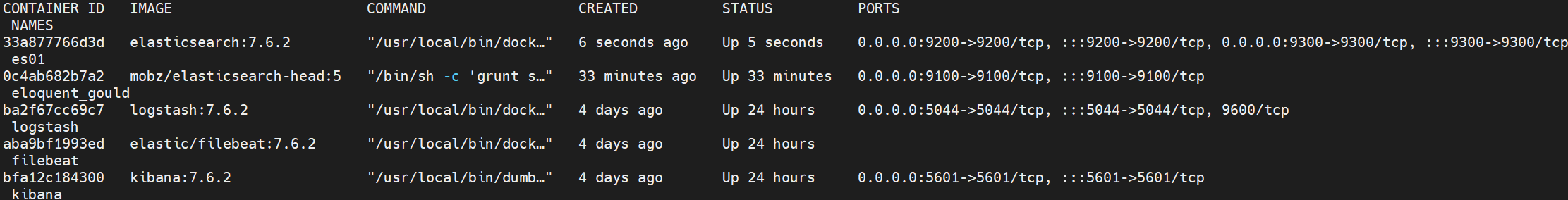 - Elasticsearch、Logstash、Kibana、Filebeat、容器的版本为 7.6.2