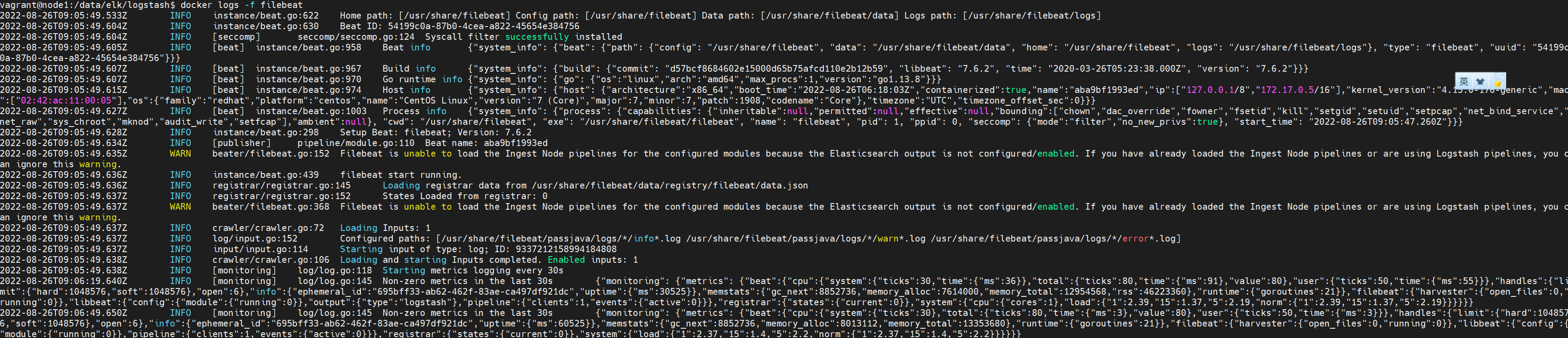 临时方式启动,主要是为了映射整个 filebeat 目录,后面可以修改同步进度以及查看日志文件。