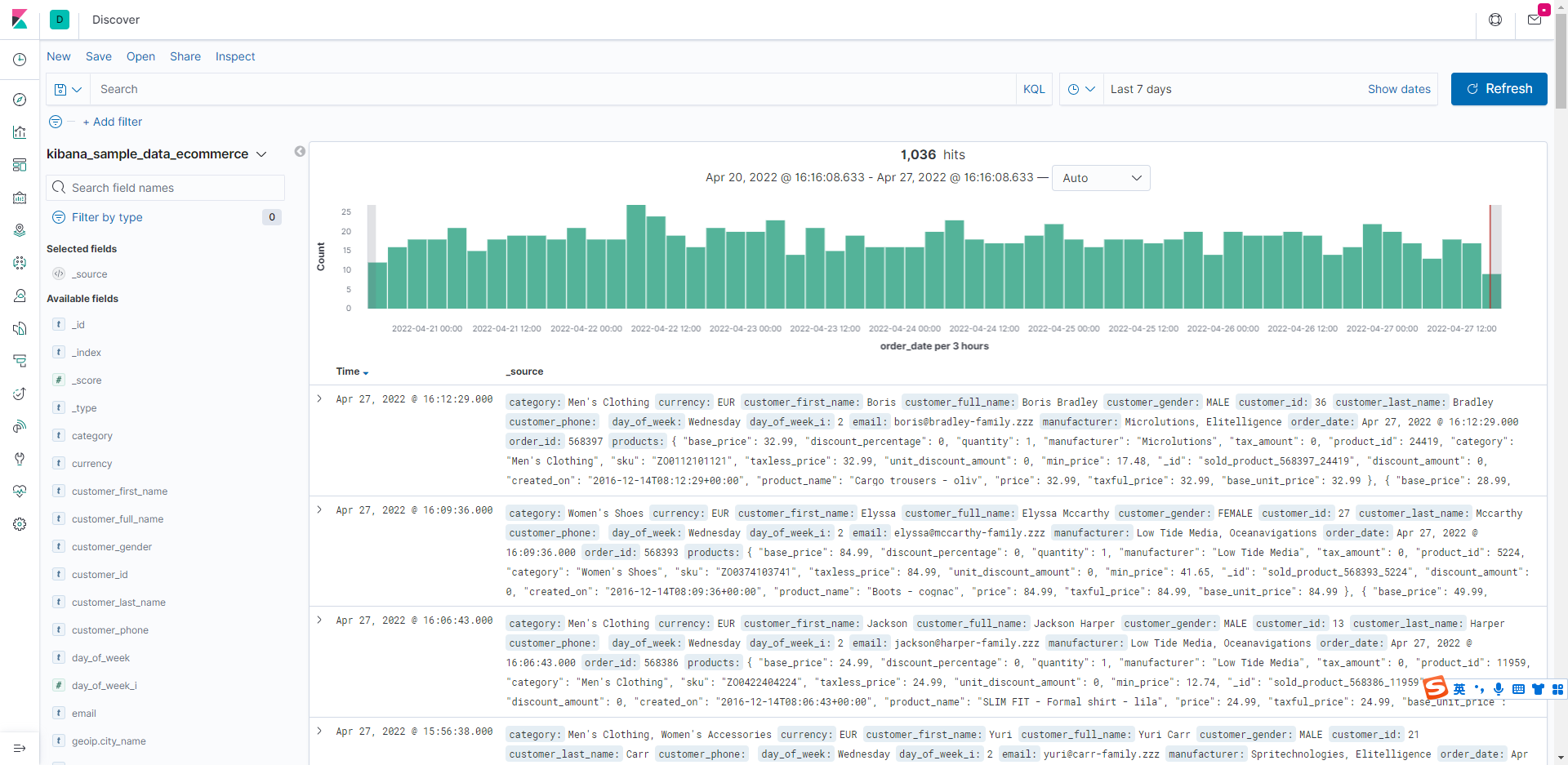 - 5、Kibana 可视化工具从 Elasticsearch 中查询数据并展示出来。