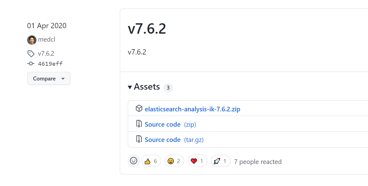 选择 ES 对应版本的 IK 分词器,我的 ES 版本为 7.6.2。