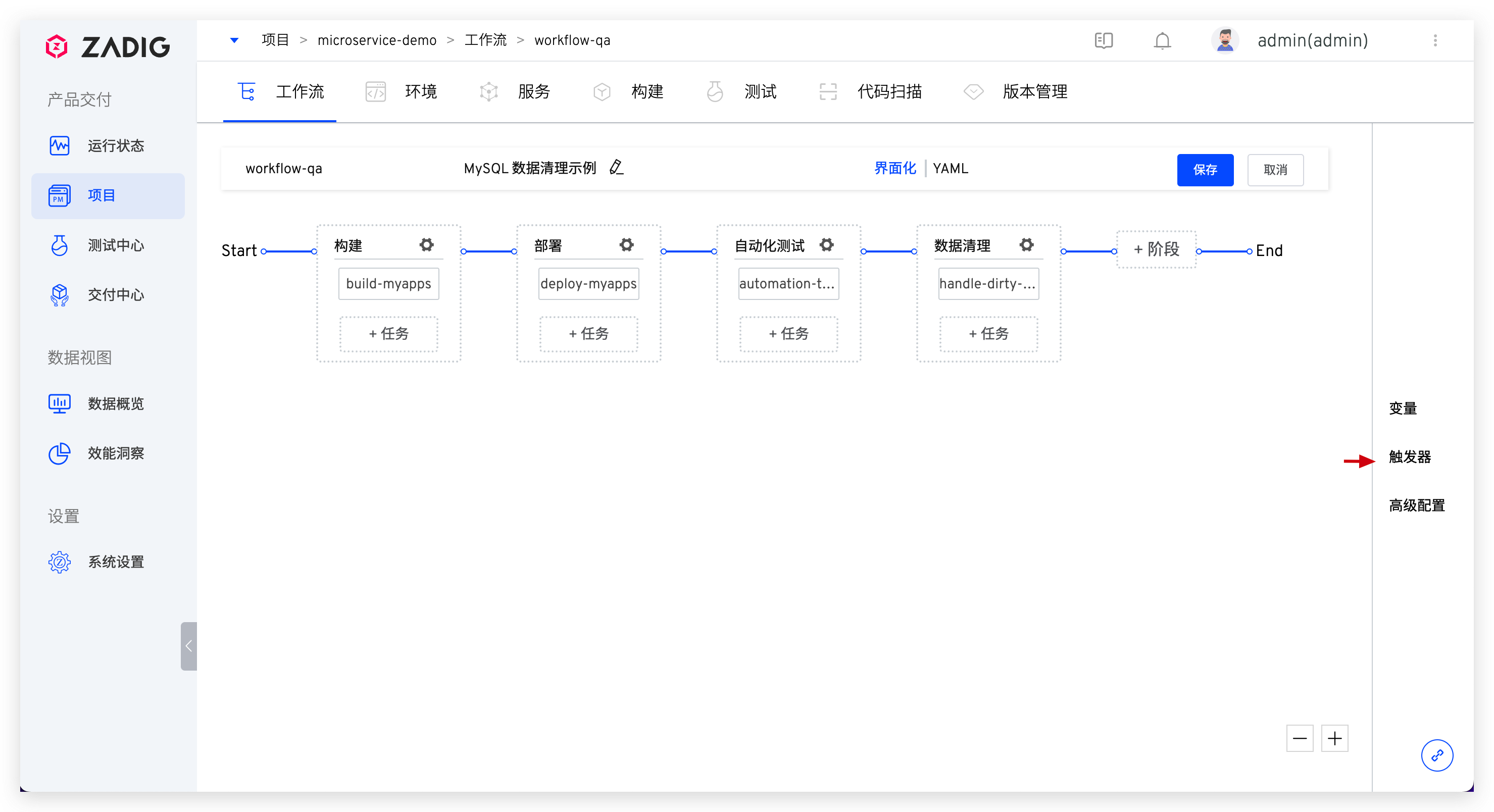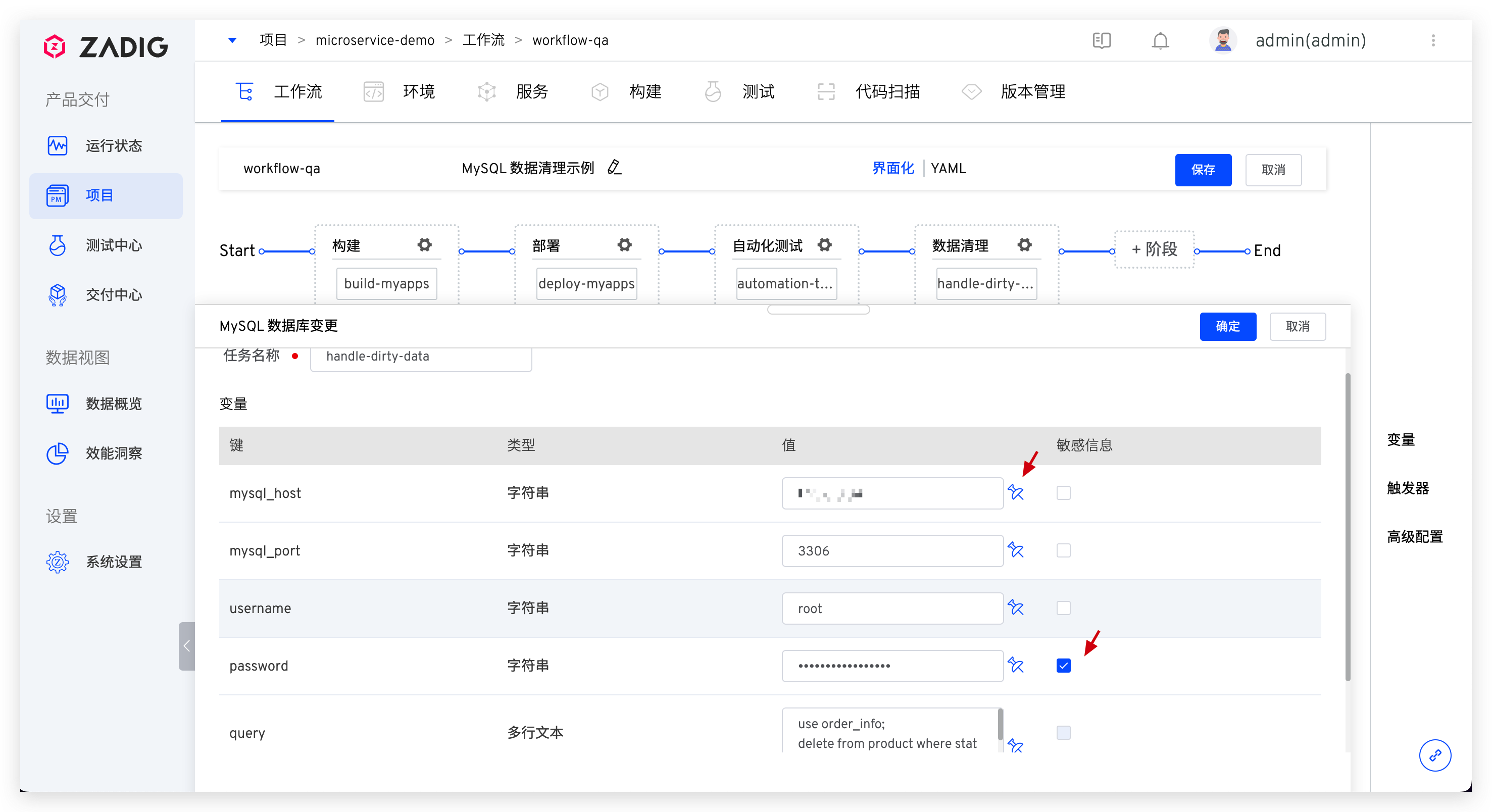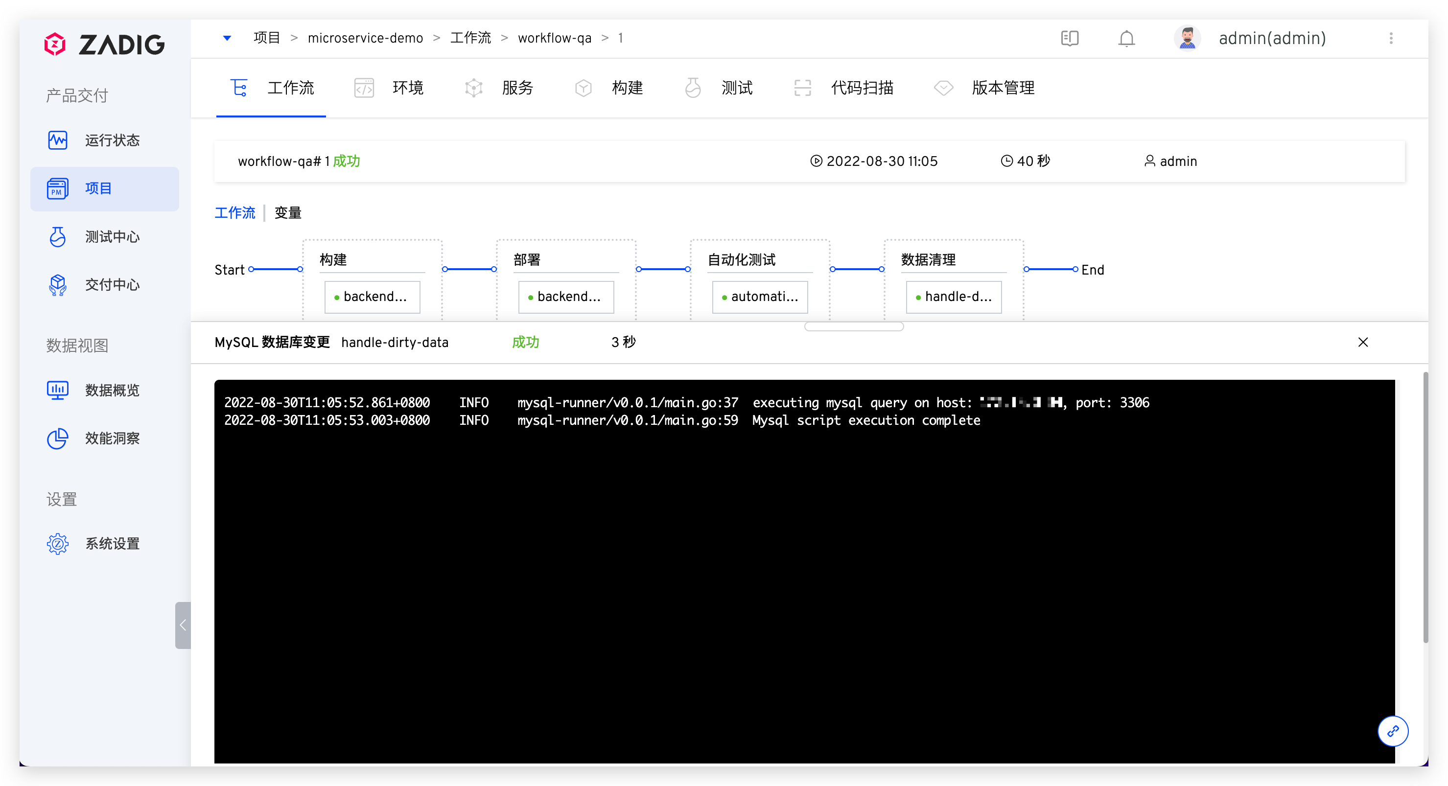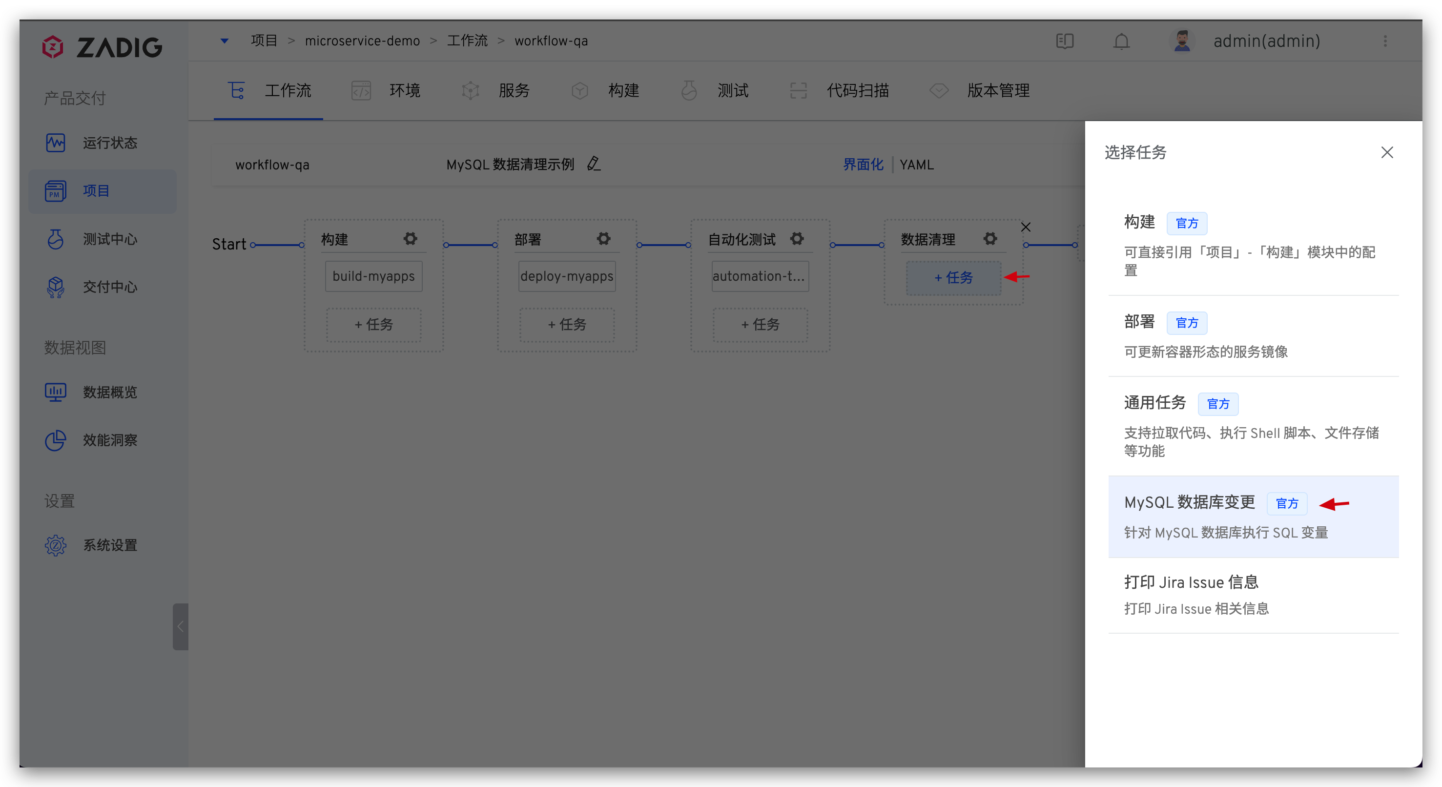 下面以 Zadig 官方提供的 MySQL 数据库变更任务为例,就上述场景分别说明如何在 Zadig 中实现 MySQL 代码、数据的一站式变更,将重复的事情自动化。