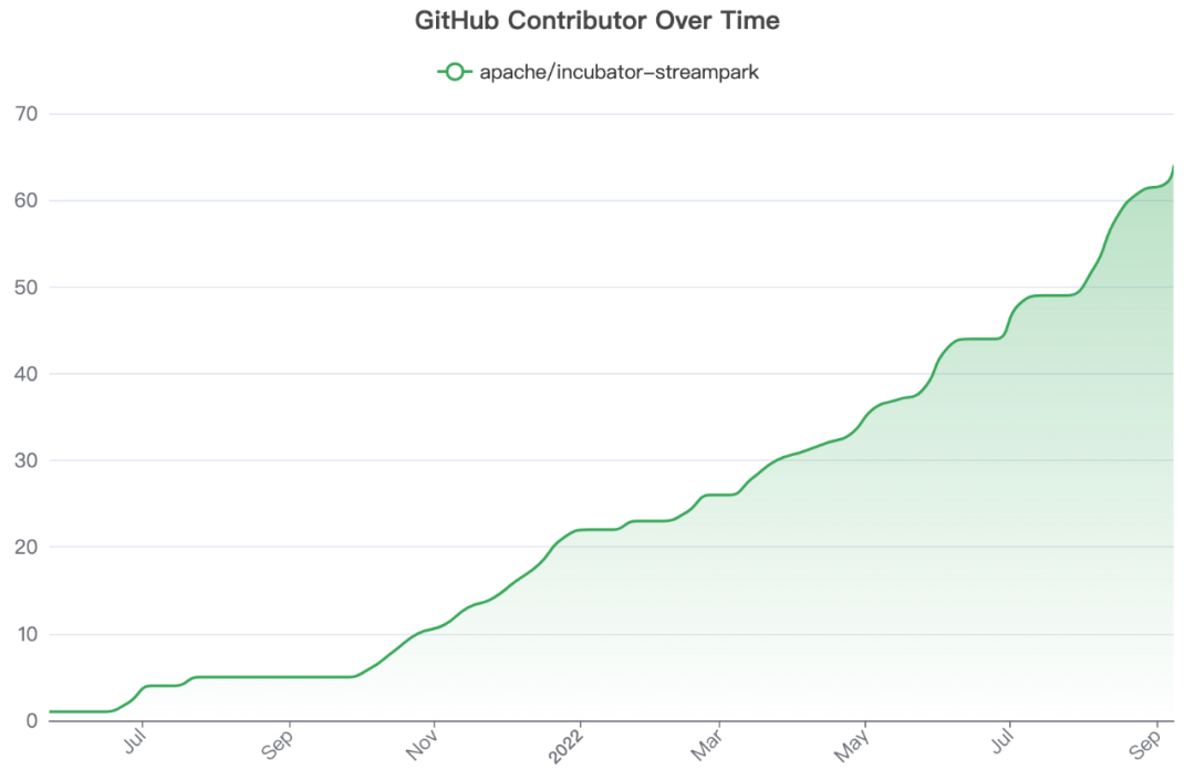 目前 StreamPark 已初步建立起了一个小型社区, 自开源以来累计发版 10 余次, Github Star 2K, 累计下载次数 5.6 K, 累计开发者共计 66 位, 项目一直处于活跃更新状态, 由衷感谢每位贡献者的努力和付出。