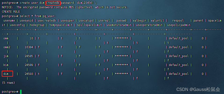 注:数据库名称遵循SQL标识符的一般规则。当前角色自动成为此新数据库的所有者。