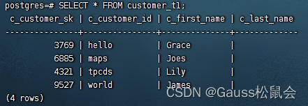openGauss=# SELECT * FROM customer_t1;