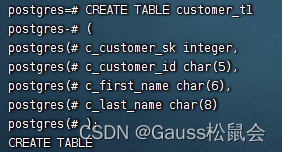 openGauss=# CREATE TABLE customer_t1