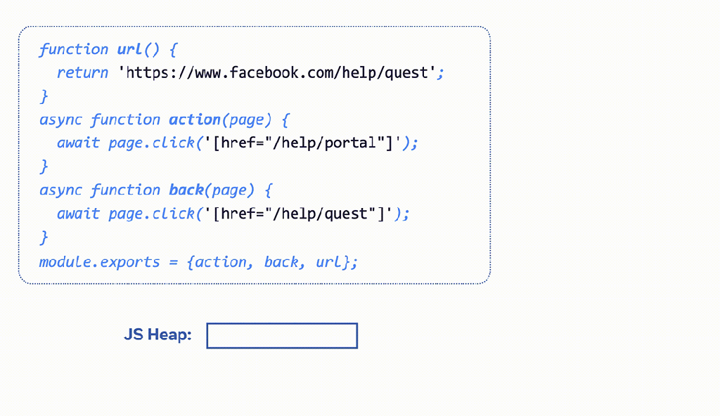 MemLab 的工作原理是通过预定义的测试场景运行 headless 浏览器并对 JavaScript heap snapshots 进行差异分析来发现内存泄漏。此过程分六个步骤进行: